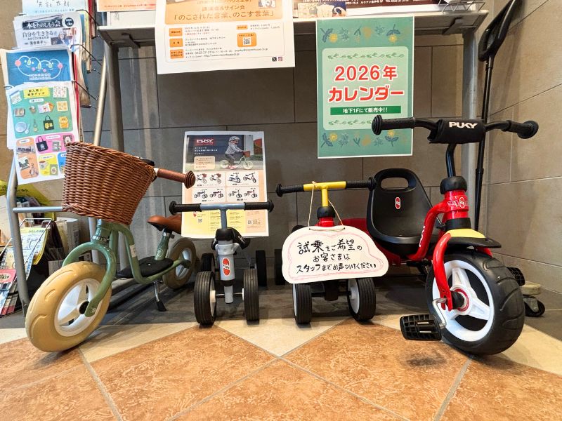 店内では、三輪車からラーニングバイクまで、プッキーの子ども用乗り物を実際に見て選ぶことができます。