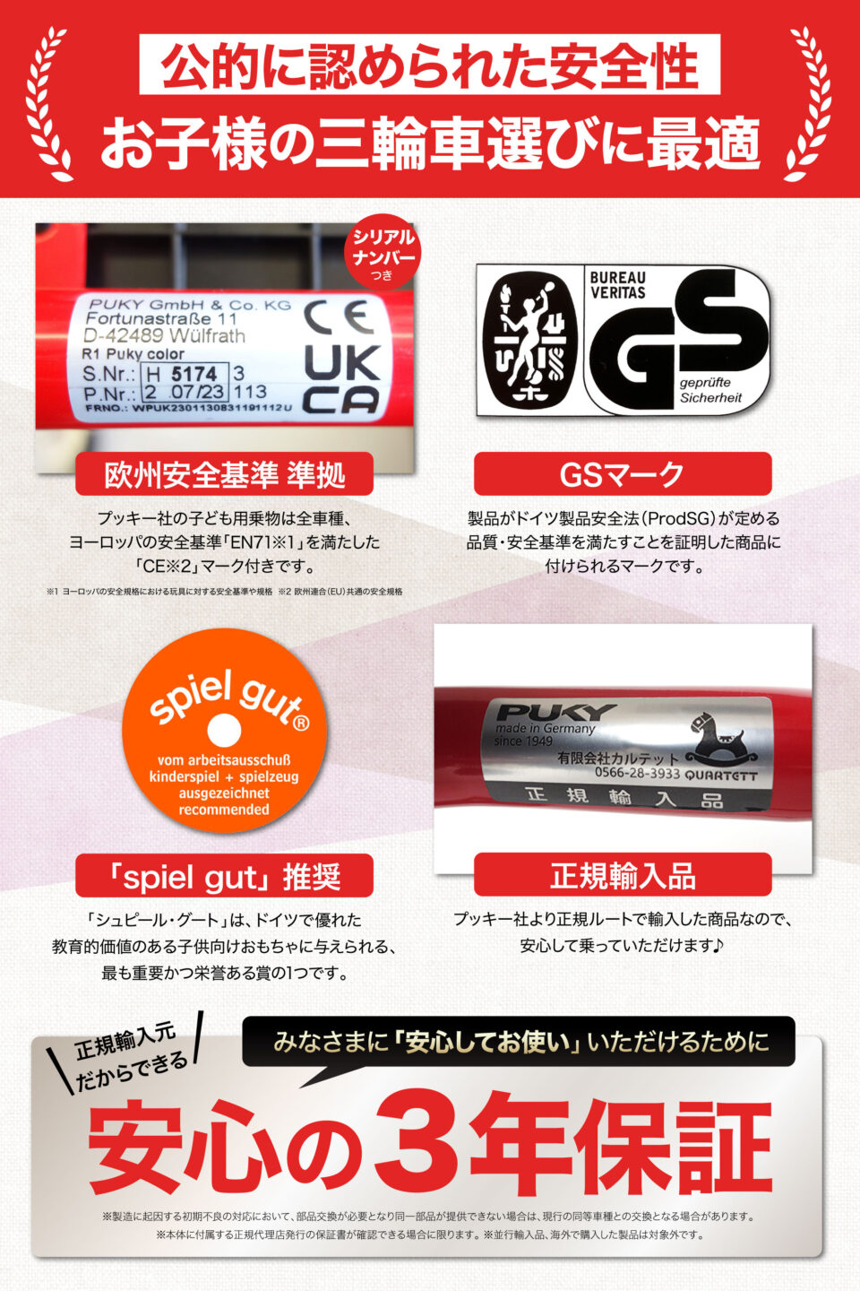 耐久性にこだわったプッキーだからこそできる、安心の3年保証。