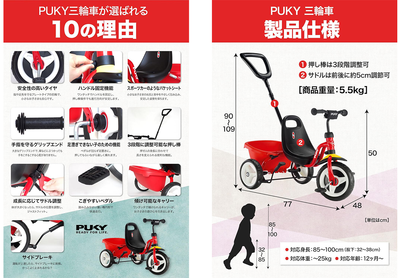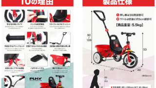 プッキー三輪車CAT1スペシャルは、安全安心とカッコよさ、ダイナミックさを兼ね備えた人気の三輪車。