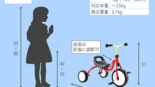 | 注意事項 | ※【フィッチ】は家庭向けの三輪車です。保育施設での多数のお子さんの使用を想定していません。保育施設での使用による破損はサポート・保証対象外ですので、ご了承ください。 |