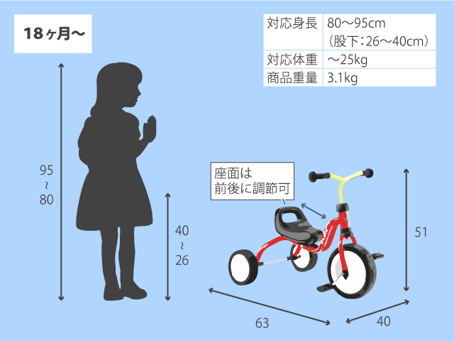 | 対応身長 | 80cm〜95cm(股下26cm〜40cm) |