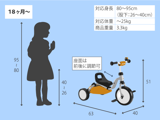 | 対応身長 | 80cm〜95cm(股下26cm〜40cm) |