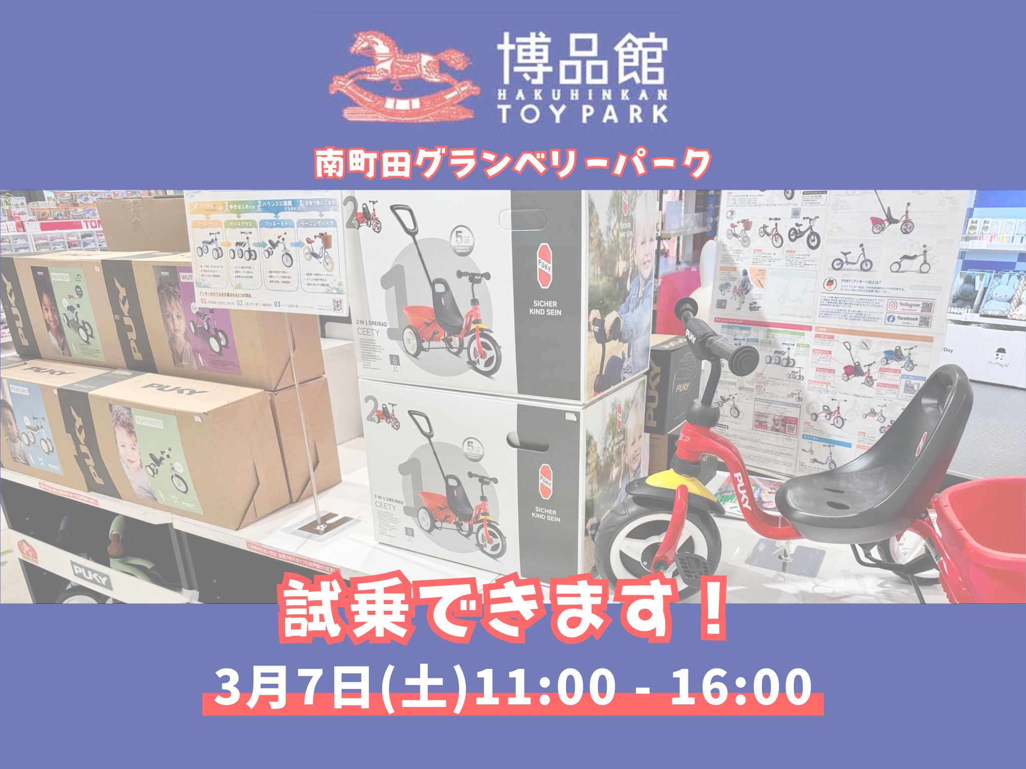 【プッキー試乗会開催】3月7日(土)博品館トイズコンセプト 南町田グランベリーパーク店