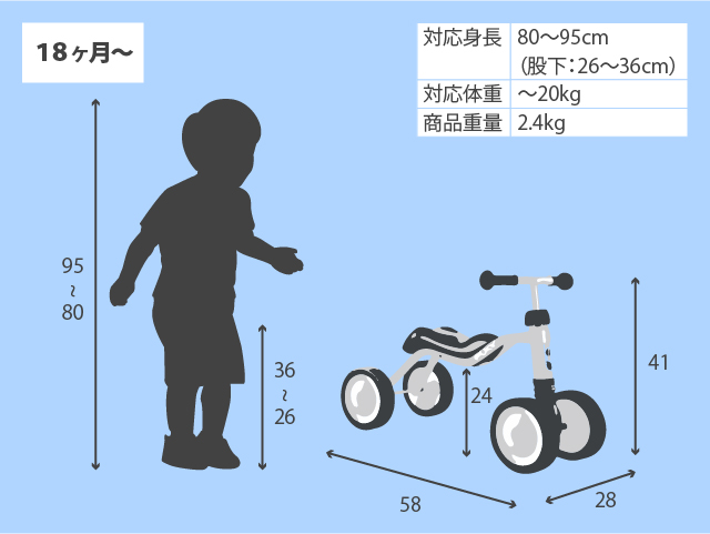 | 対応身長 | 80cm〜95cm(股下26cm〜36cm) |
